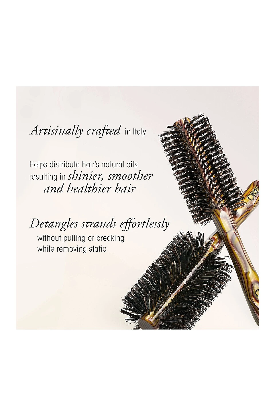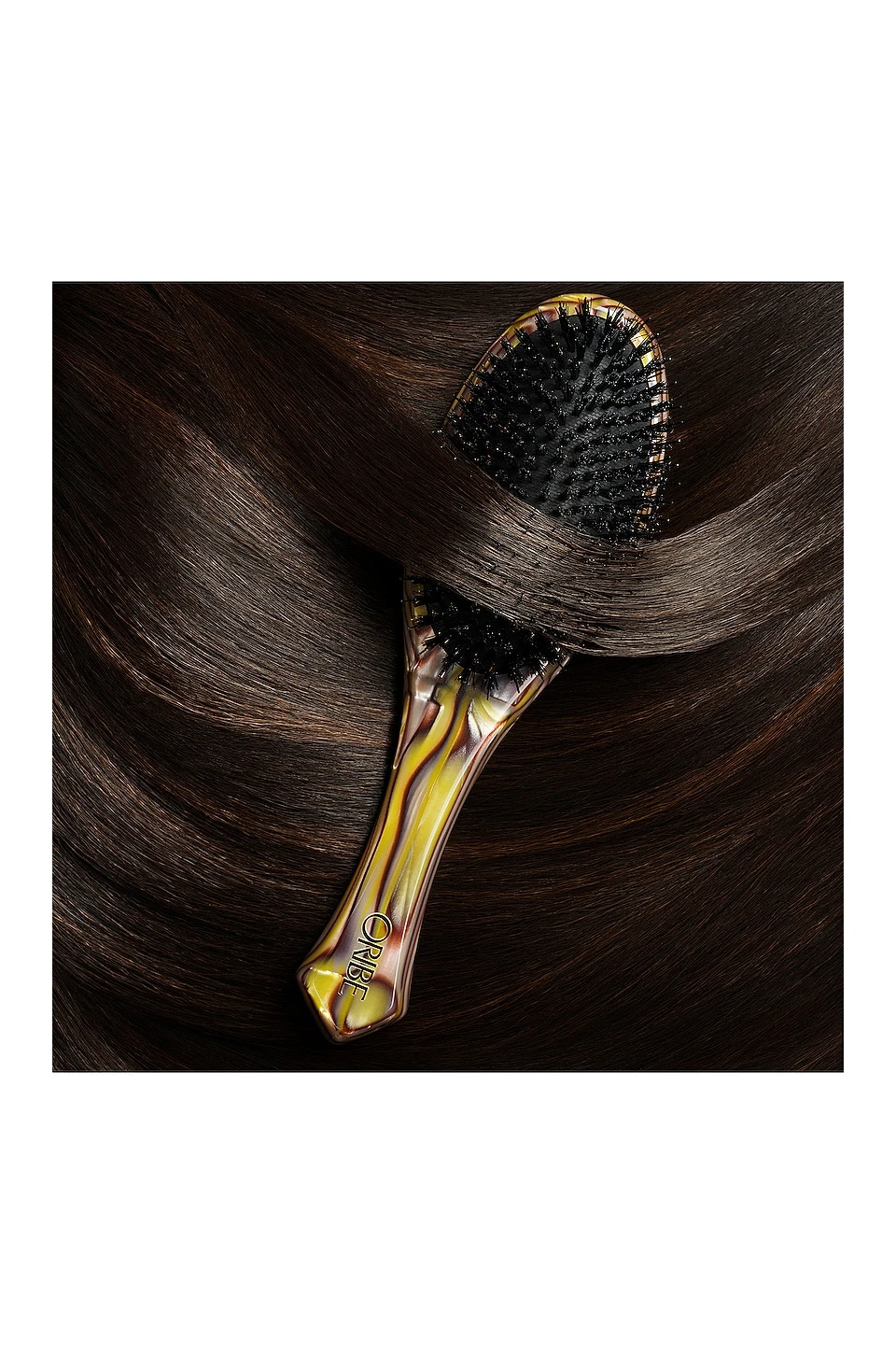 Oribe’s Flat Brush features a mix of high-quality boar and nylon bristles with a natural rubber cushion. The bristles and nylon-rounded tips delicately stimulate the scalp and polish hair for an ultra-sleek, shiny finish.