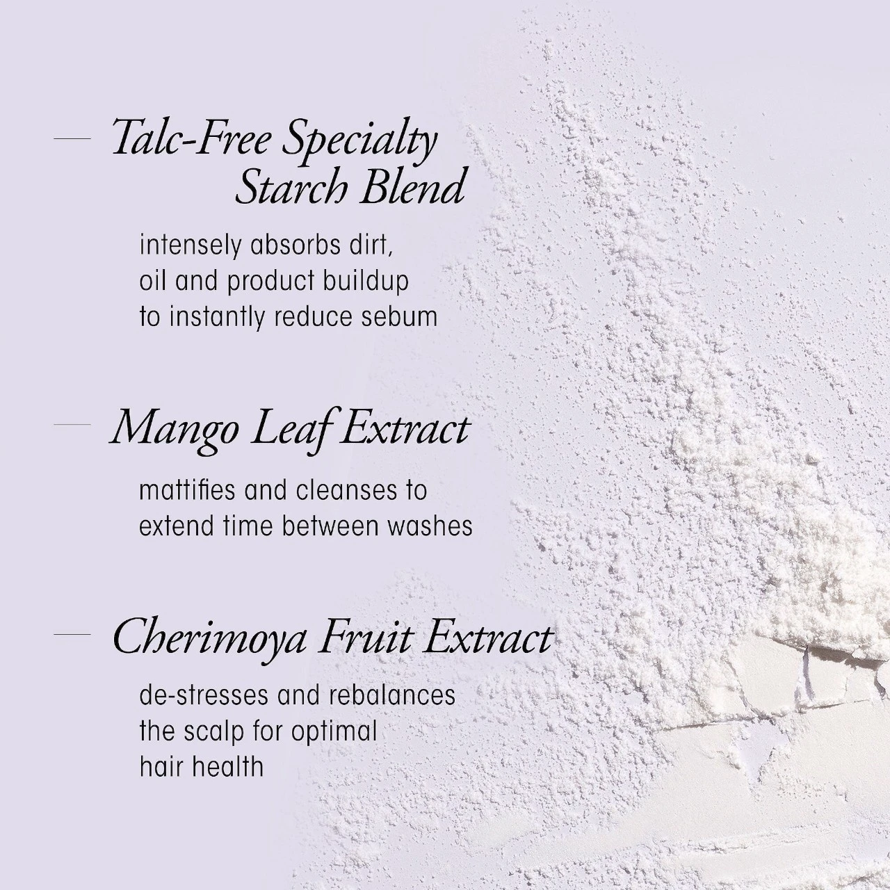 What Else You Need to Know: Extend time between washes and reset your scalp: This ultra-absorbing, silkening dry-shampoo powder mattifies the scalp and reduces excess sebum. A talc-free specialty starch blend and kaolin clay absorb oil, dirt, and product buildup while mango leaf extract supports a healthy scalp microbiome.